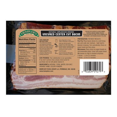 Hempler S Uncured Center Cut Bacon 40 Oz Sam S Club